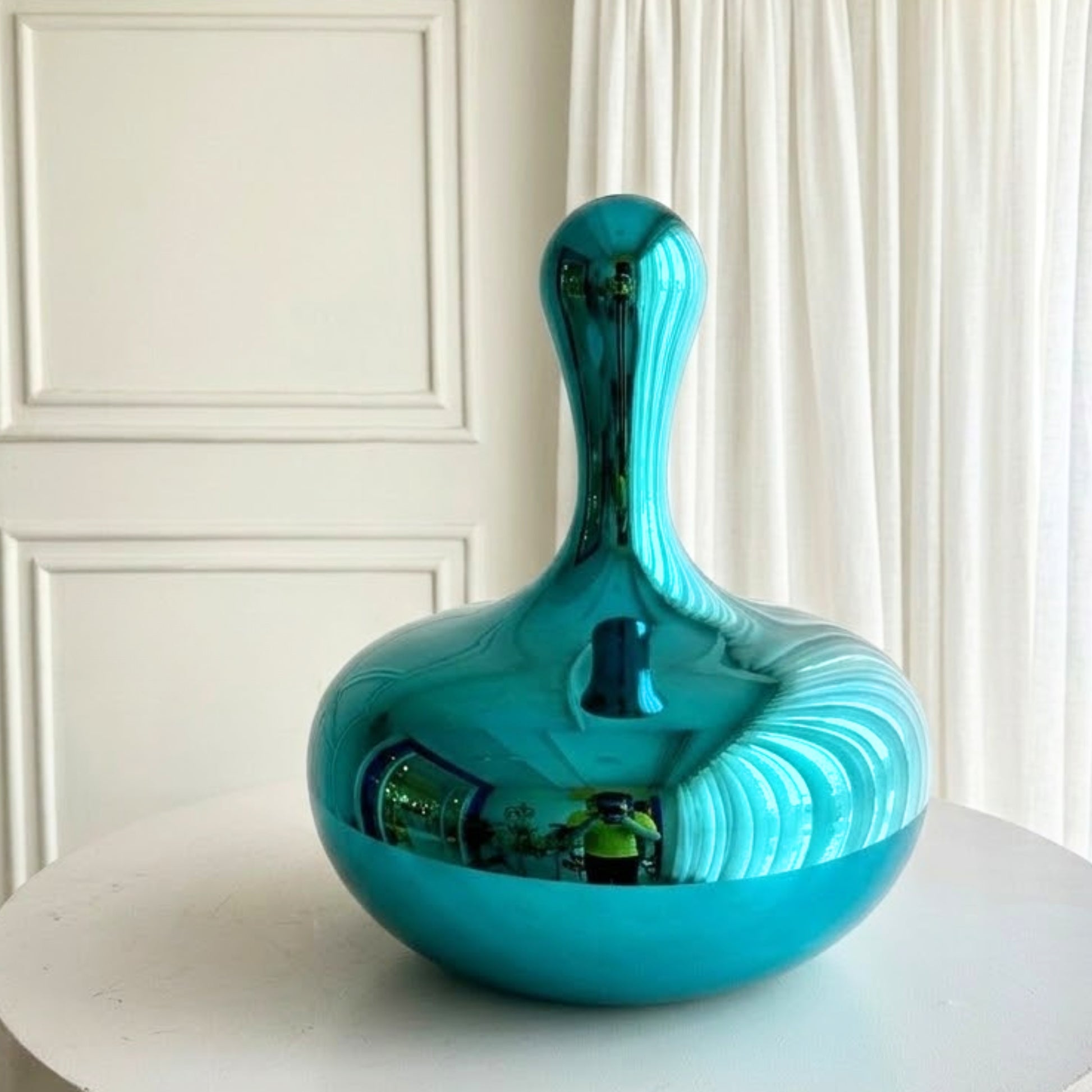 For those who are drawn to quiet fluidity in form — we present Aqua. More than a sculptural accent, it captures the softness of movement held in stillness. With its rounded silhouette and reflective teal finish, Aqua mirrors its surroundings while maintaining a calm, composed presence of its own.