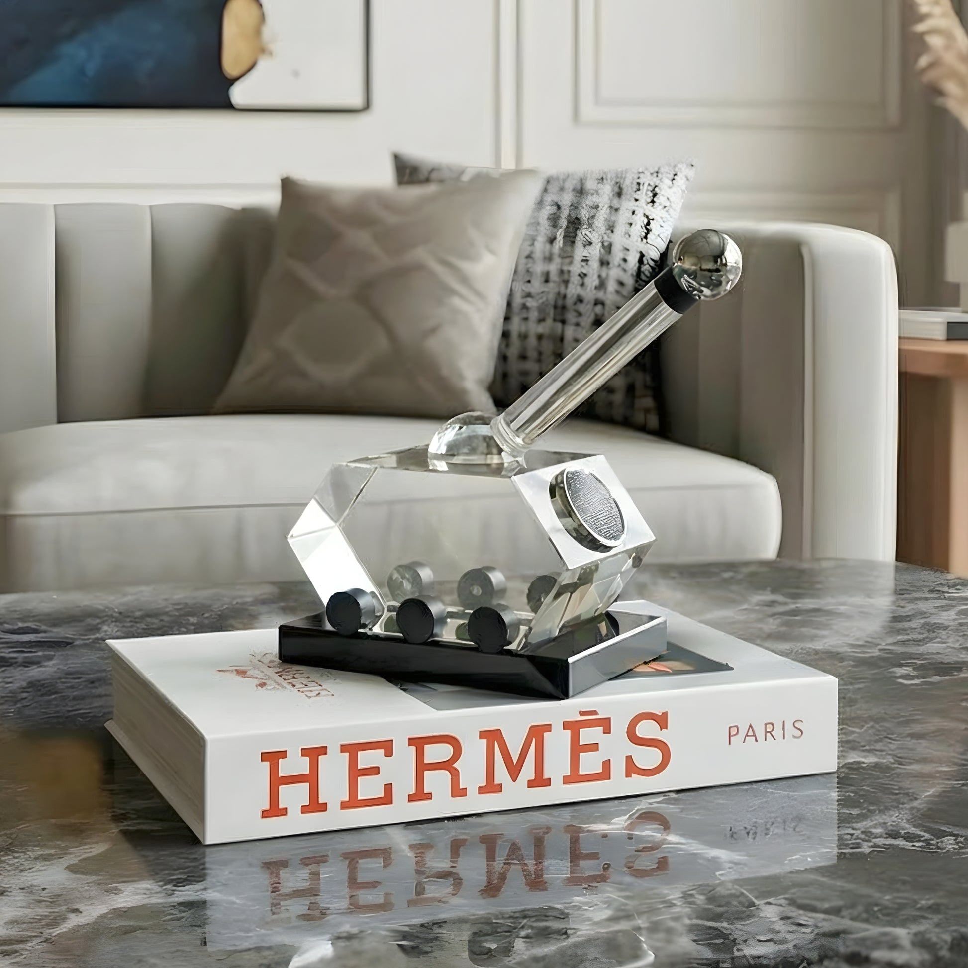 Style it on a console table, study shelf, or desk where form and intention take precedence. Its sharp geometry and reflective surfaces create a composed focal point — lending spaces a sense of authority, confidence, and modern edge without excess.