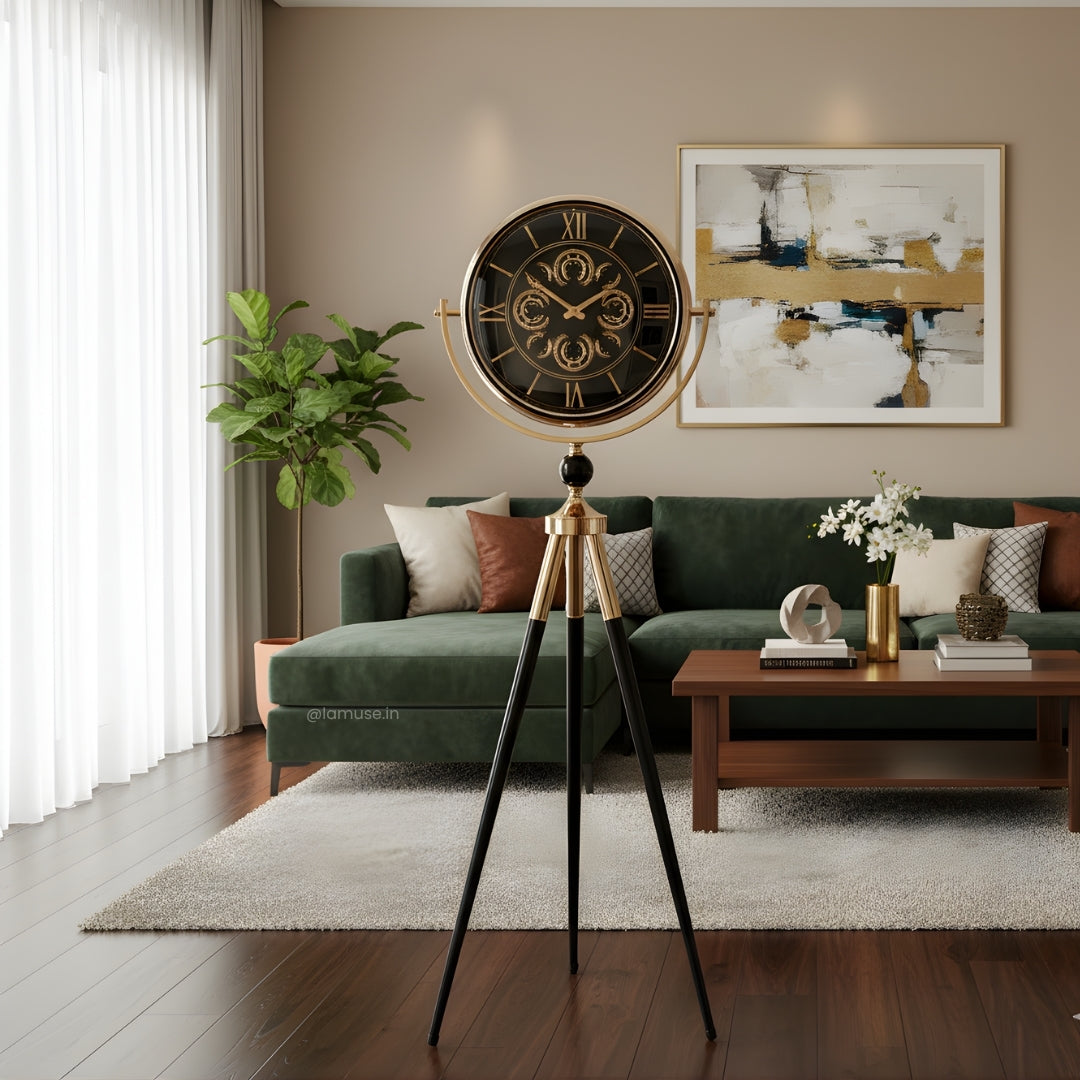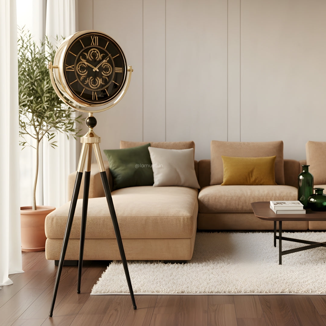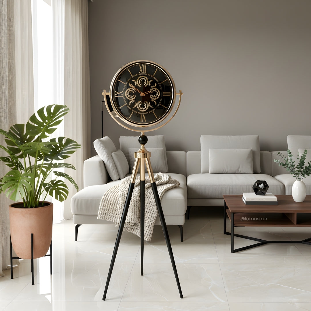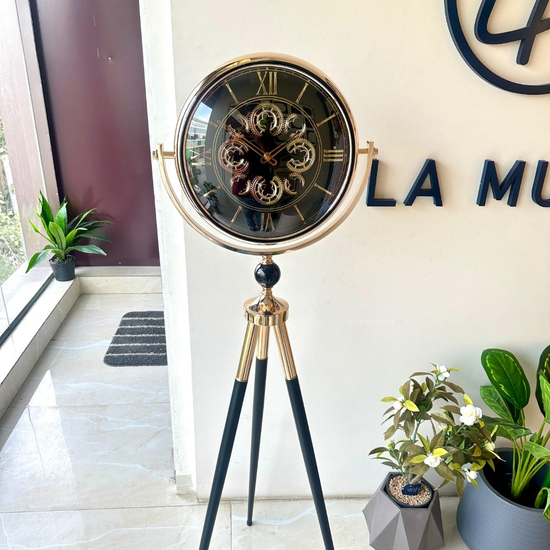 Artisanal Timecraft - Designer Floor Clock with Moving Gears Mechanism - Black & Gold