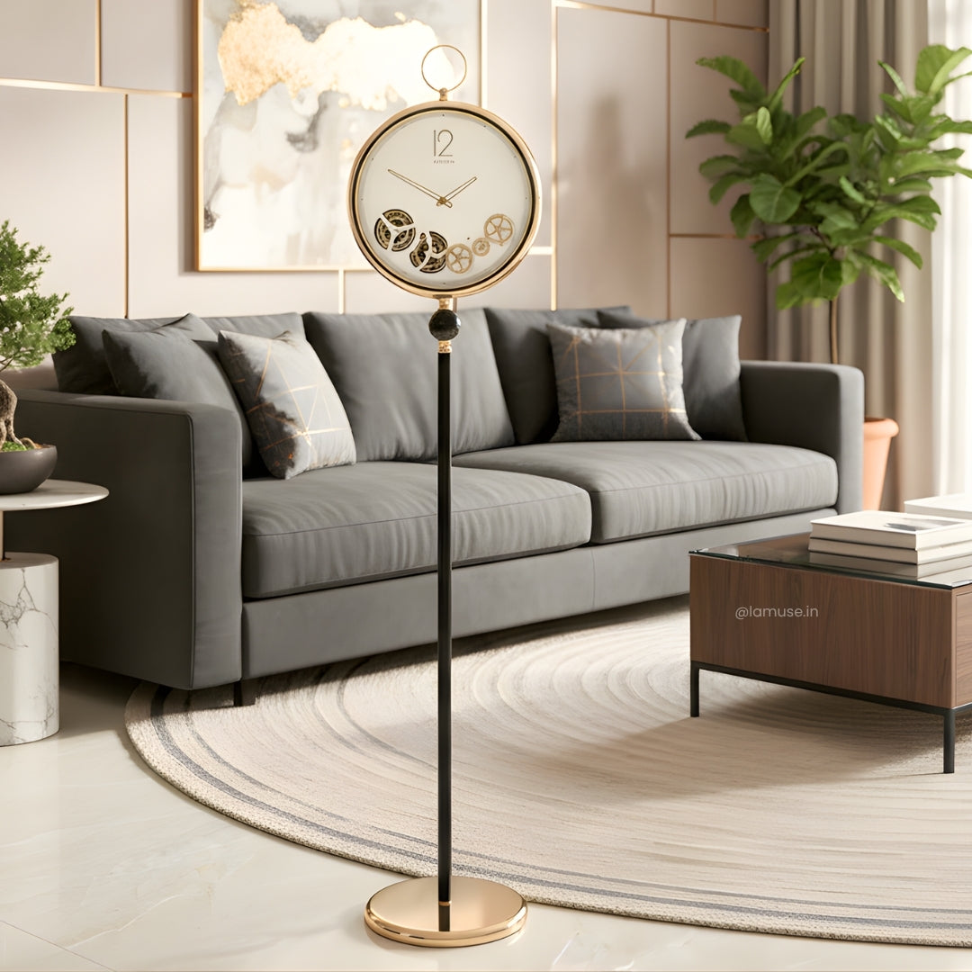 Artisanal Timecraft - Designer Floor Clock with Moving Gears Mechanism - White & Gold