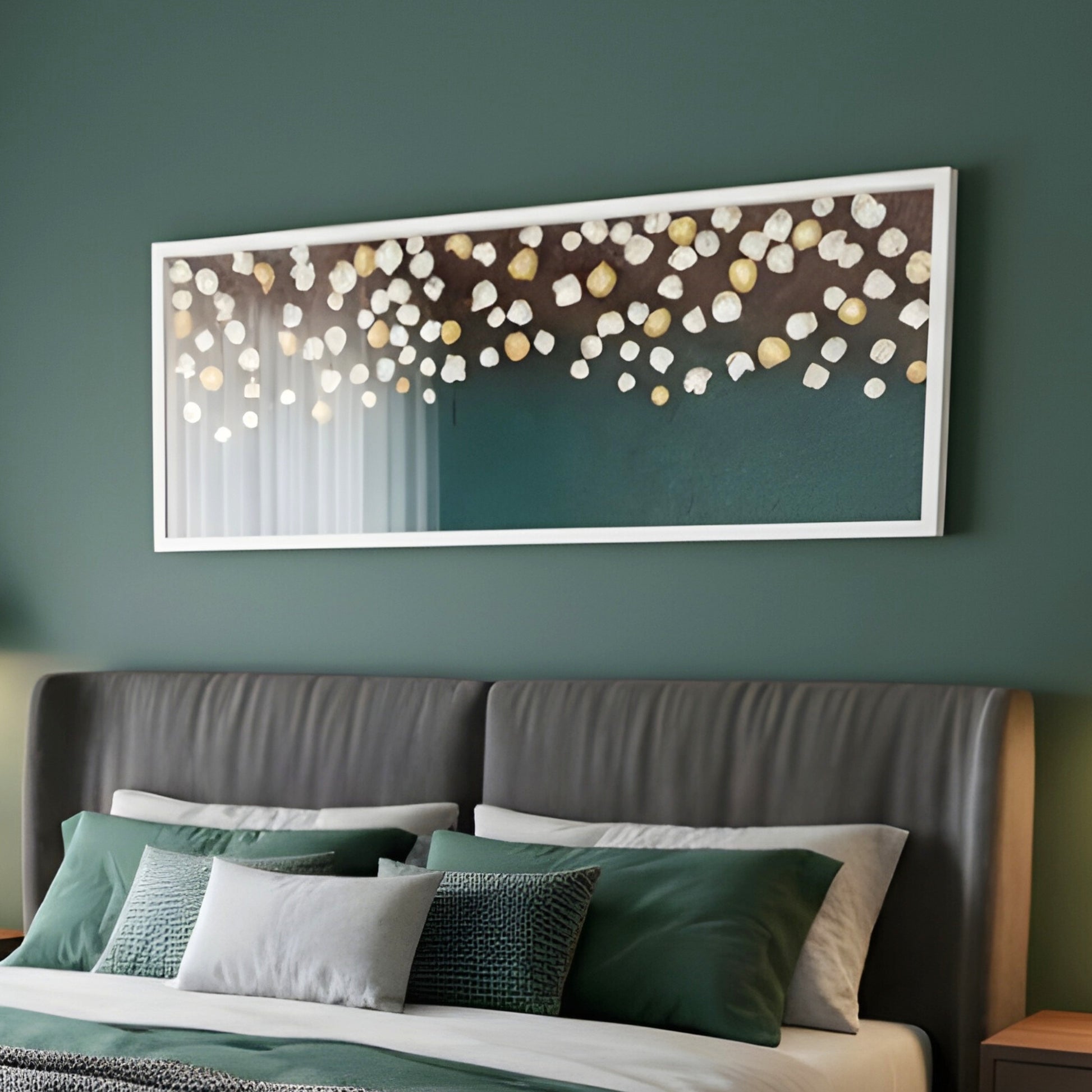 Style it in living rooms that celebrate refined restraint, above a dining console where warm lighting enhances its golden glow, or along a hallway that deserves a touch of understated drama. Its layered textures and luminous accents bring depth without excess, creating a serene yet striking focal point.