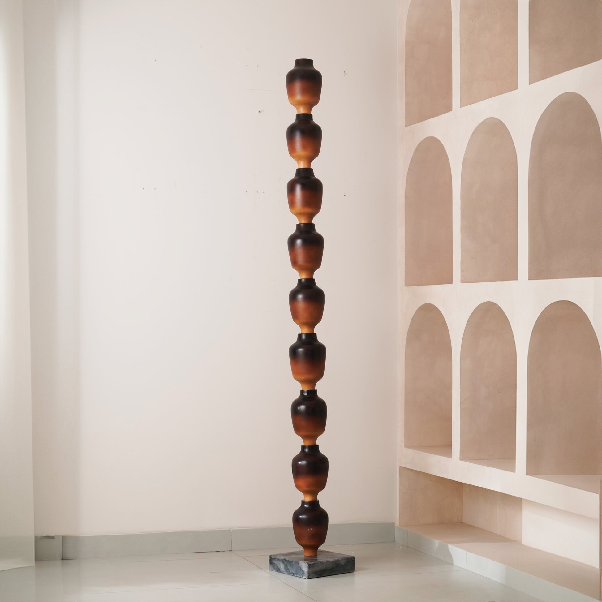 Nexus - Wood Finish Totem Floor Sculpture ~ 7 feet Tall