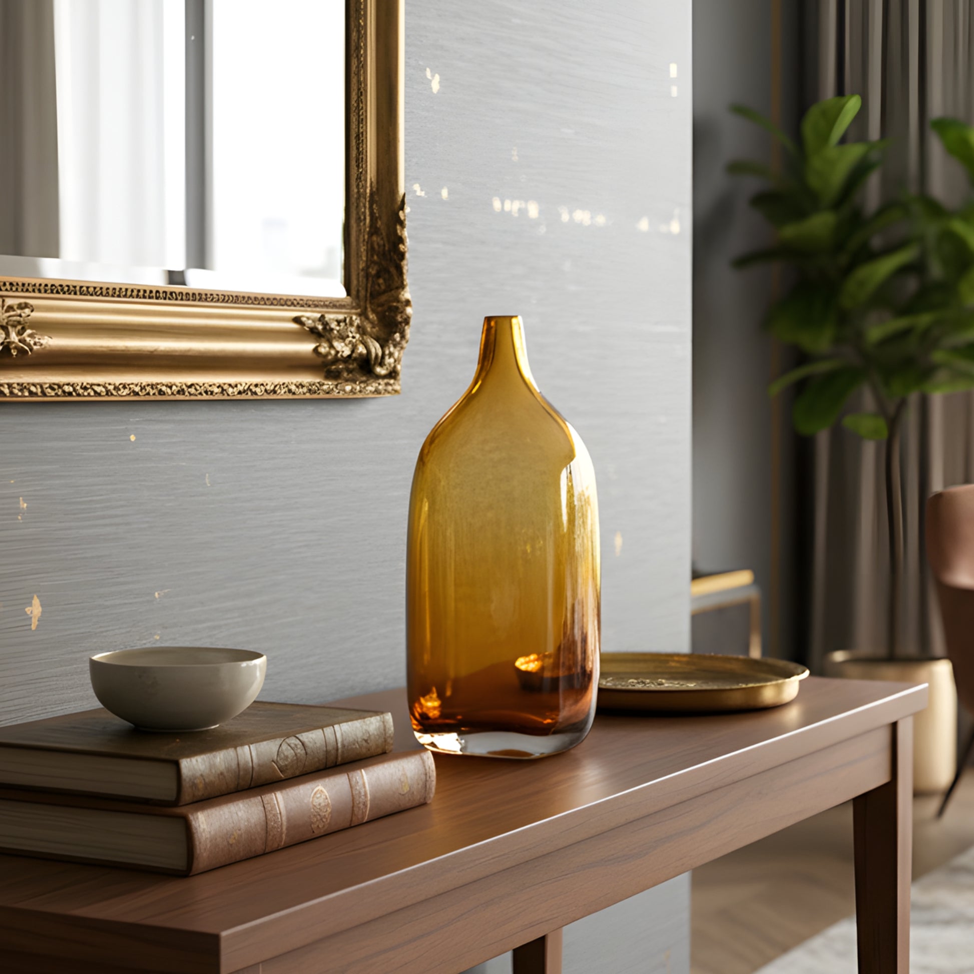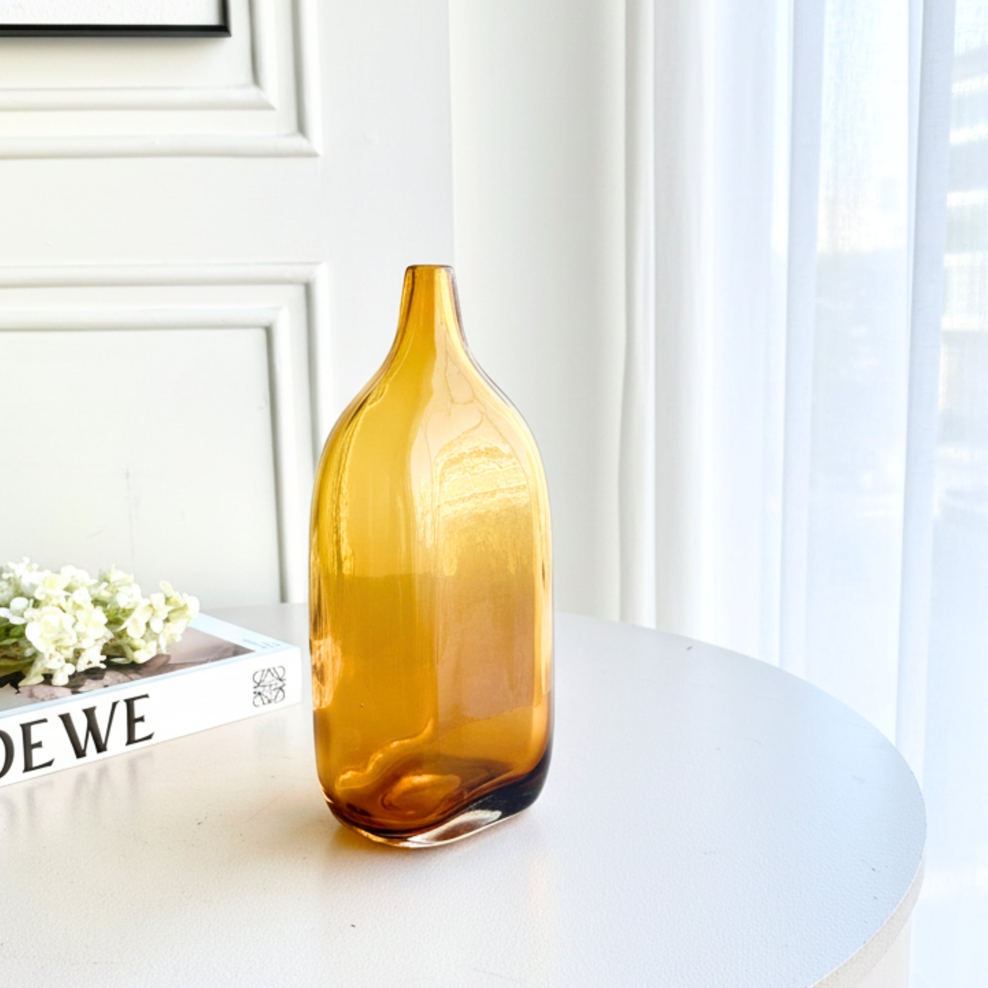 Style it as a single-stem vase on a console table, dining surface, or open shelf where light can pass through it naturally. Honey settles into its surroundings with quiet confidence, adding depth and glow without dominating the space.