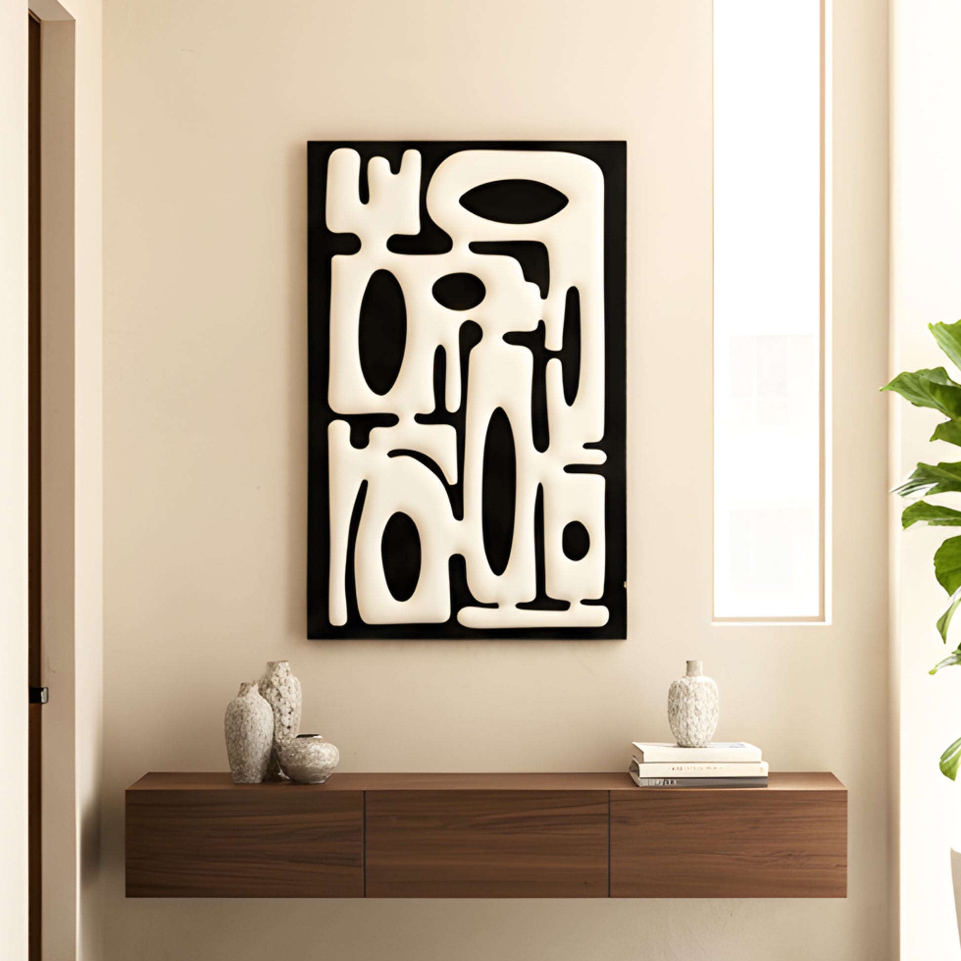 Material: Multi-layered wooden artwork finished in smooth PU for a refined, durable surface.