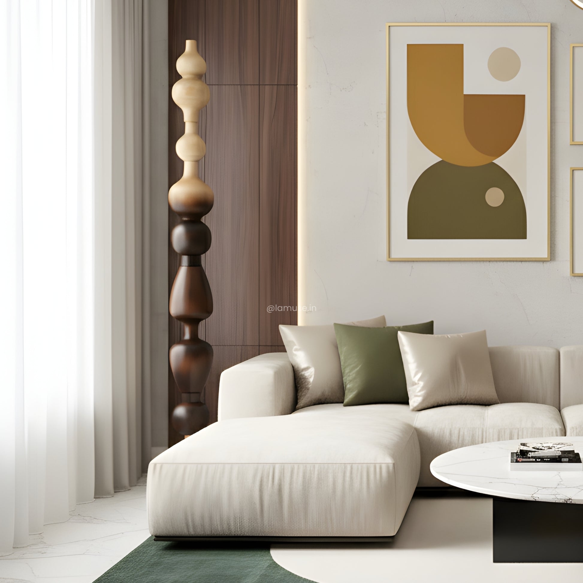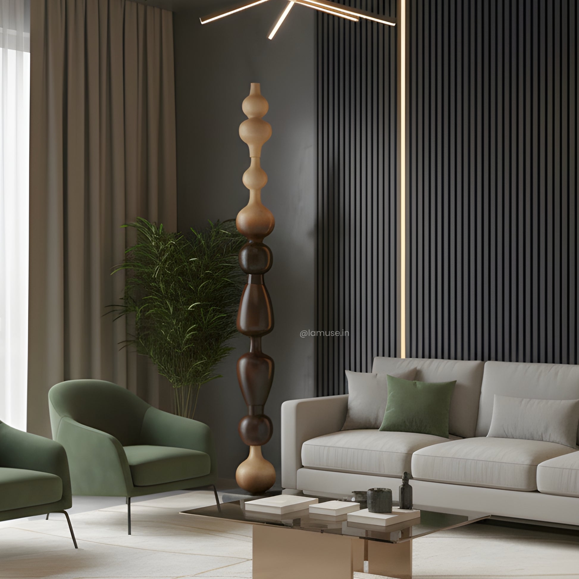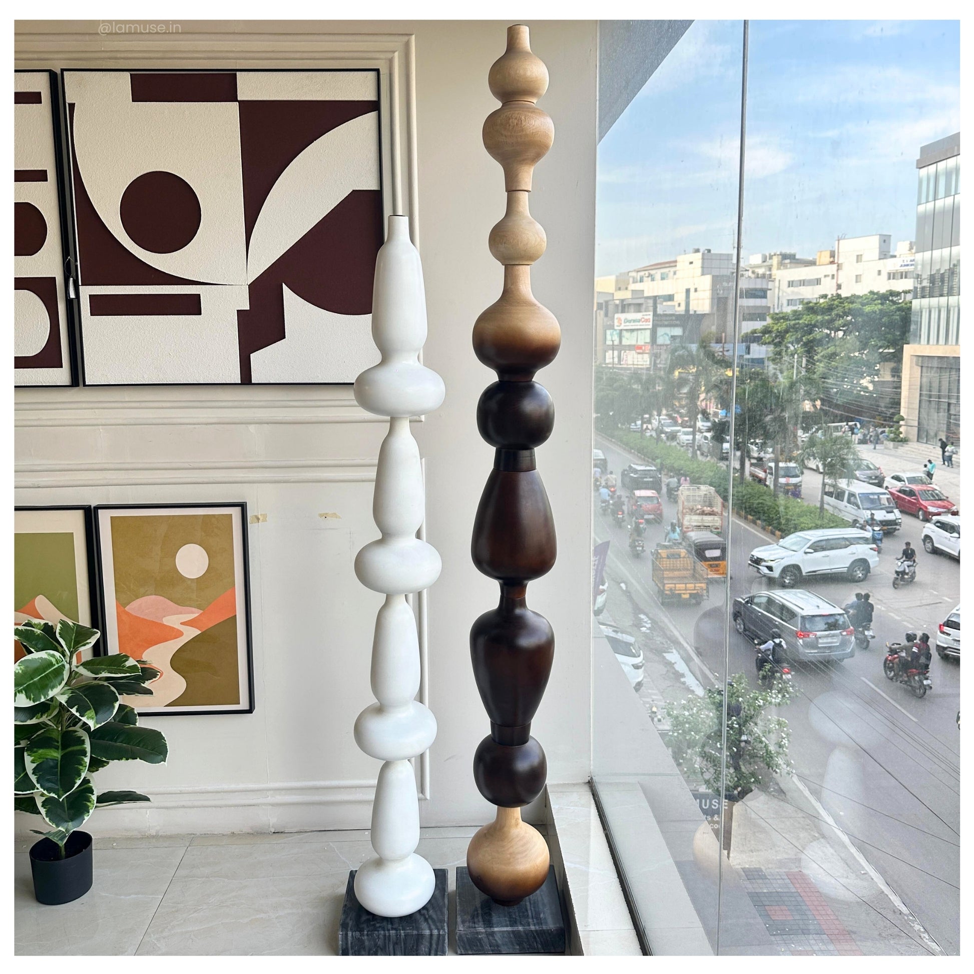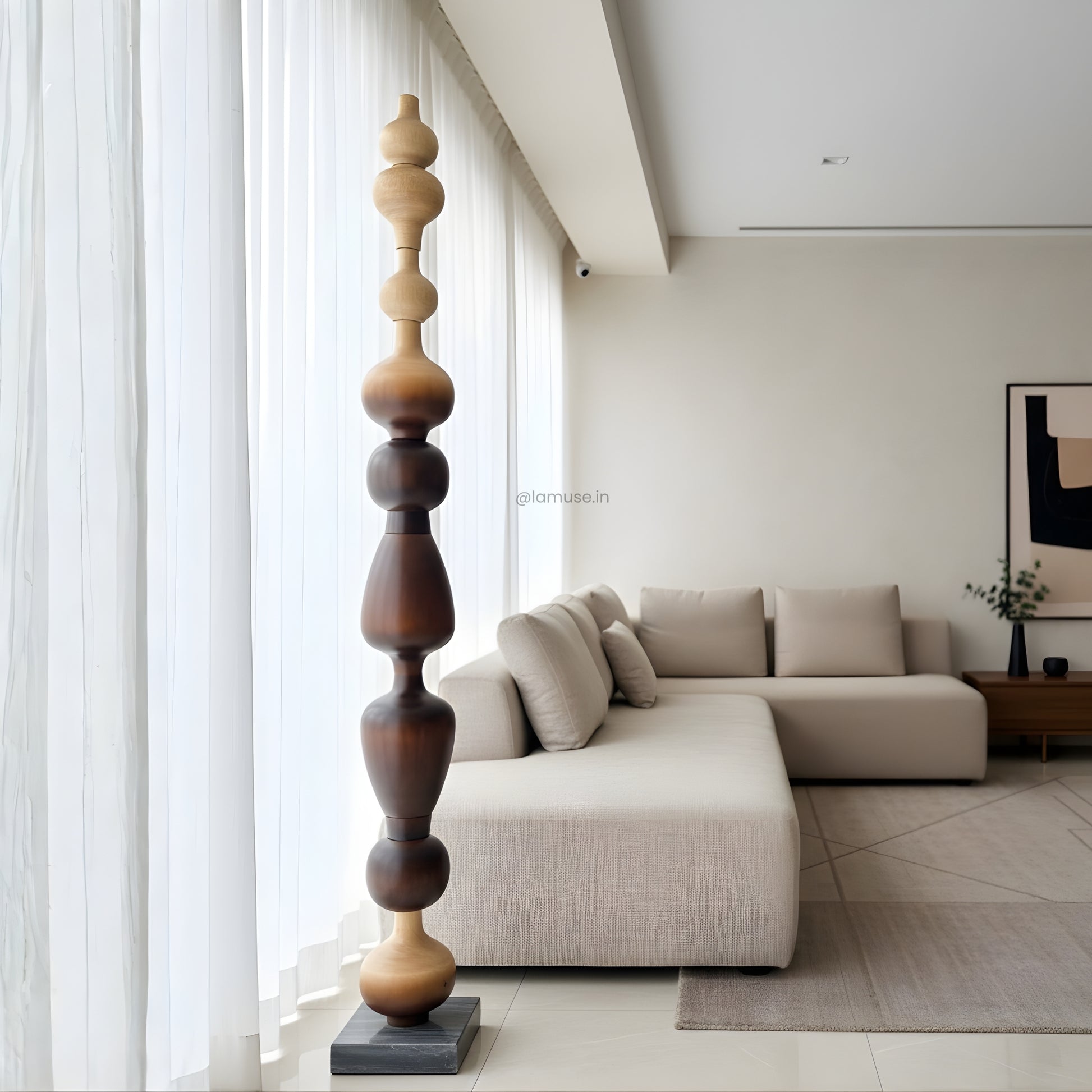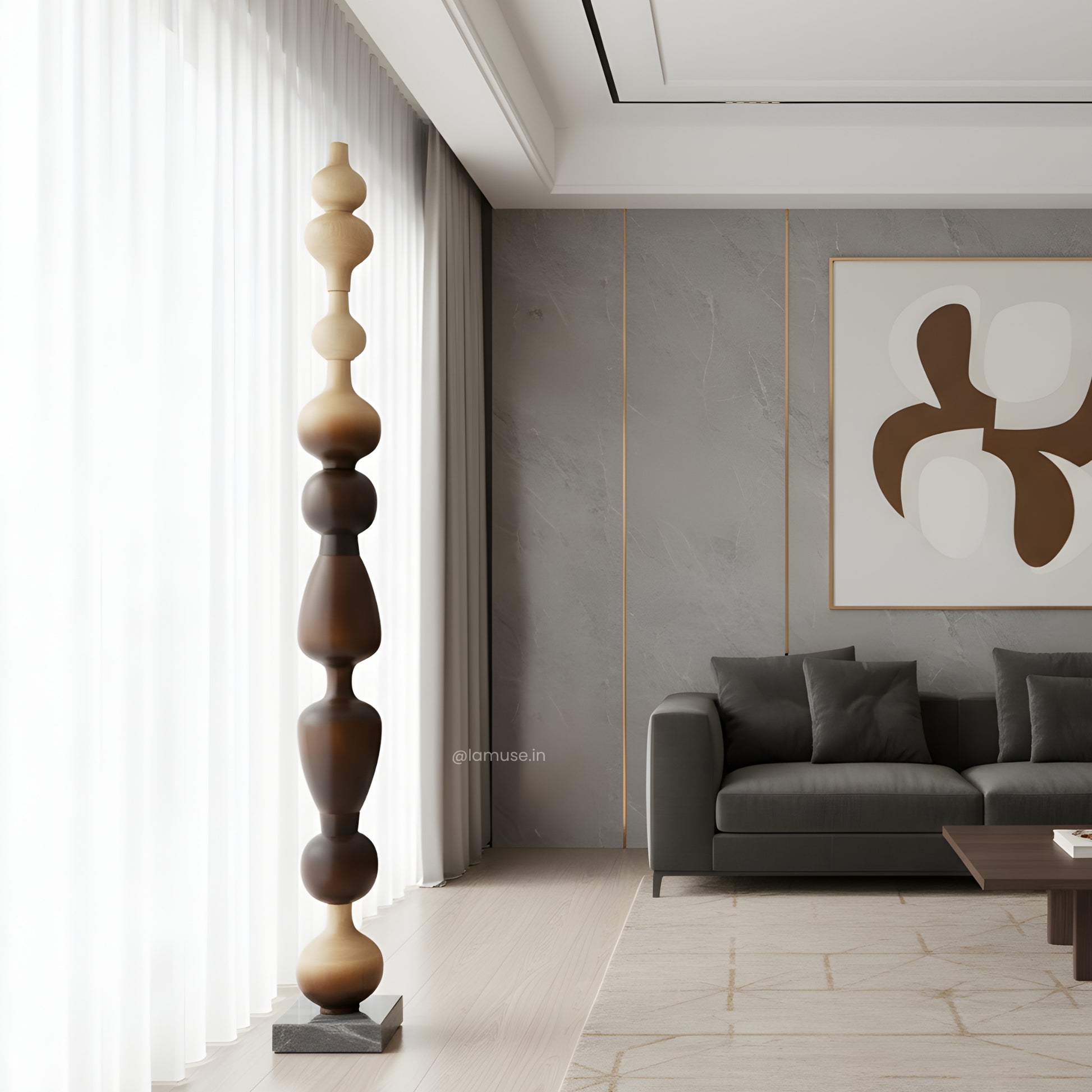Material: Crafted with a marble base and a metal–wood structure with wooden finish — a study in balance, texture, and enduring form.