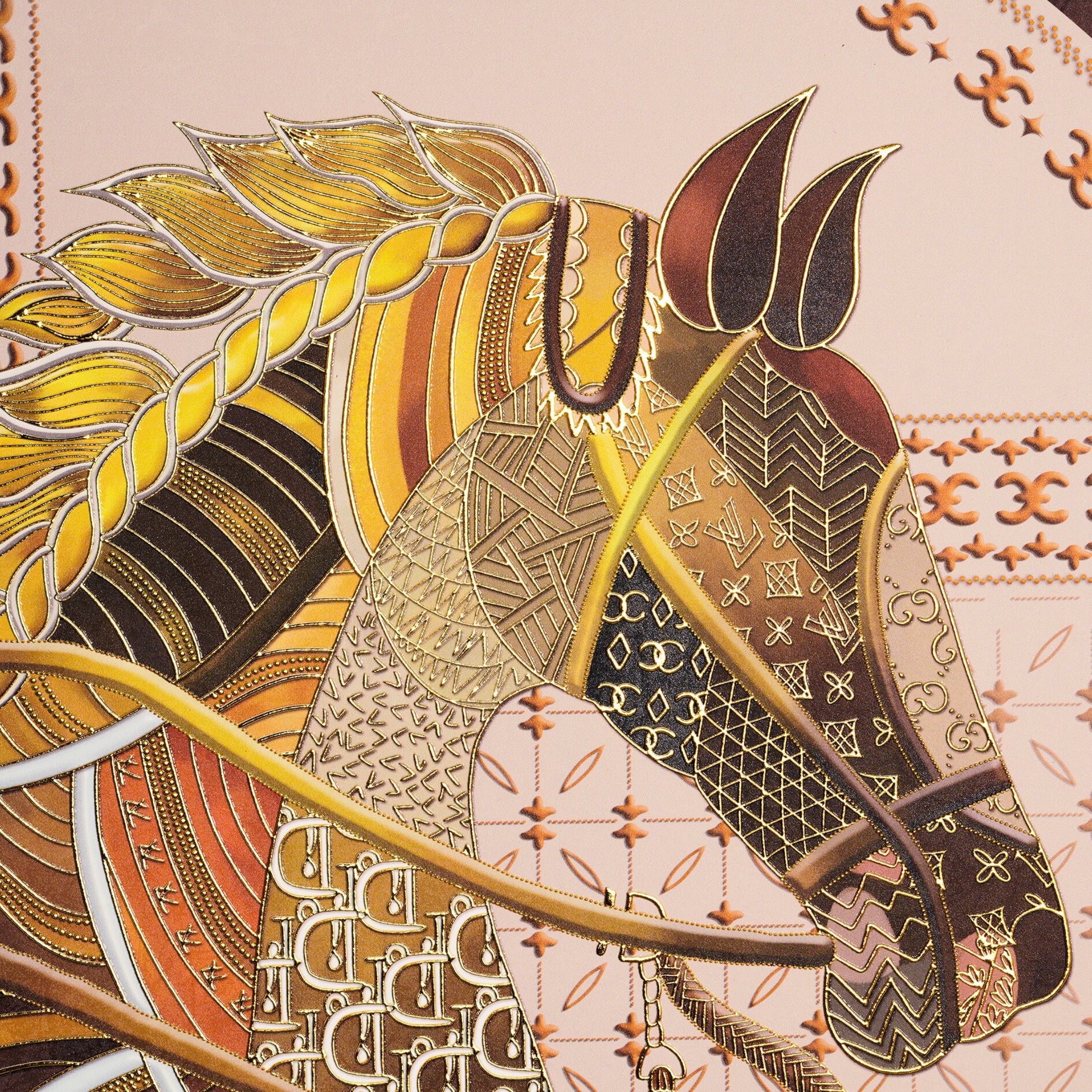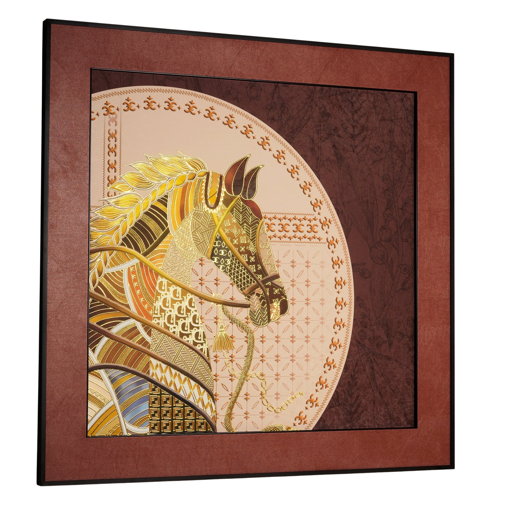 Regalia - Horse Inspired Premium 3D Leather Wall Art (Brown & Gold) ~ 3.5 x 3.5 feet