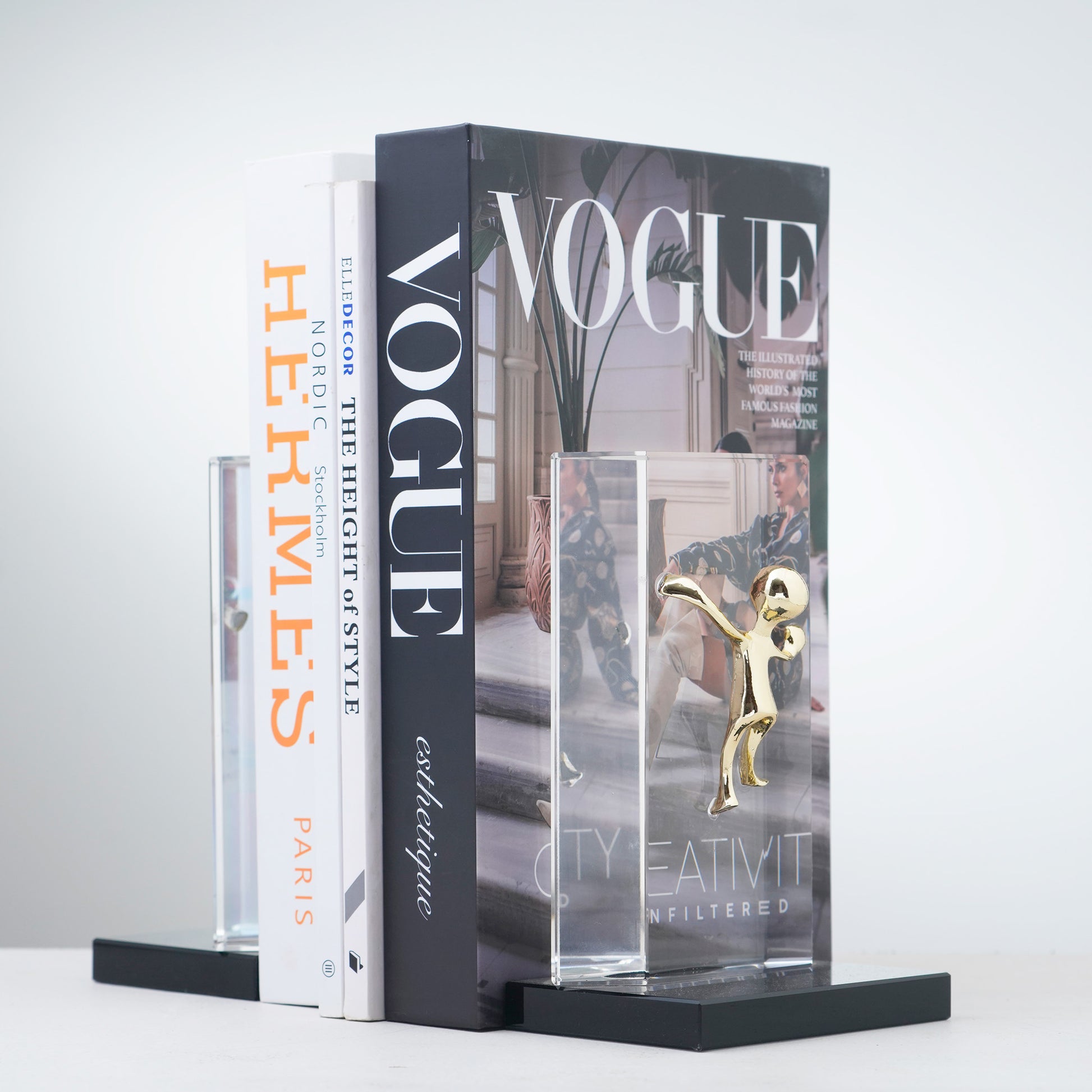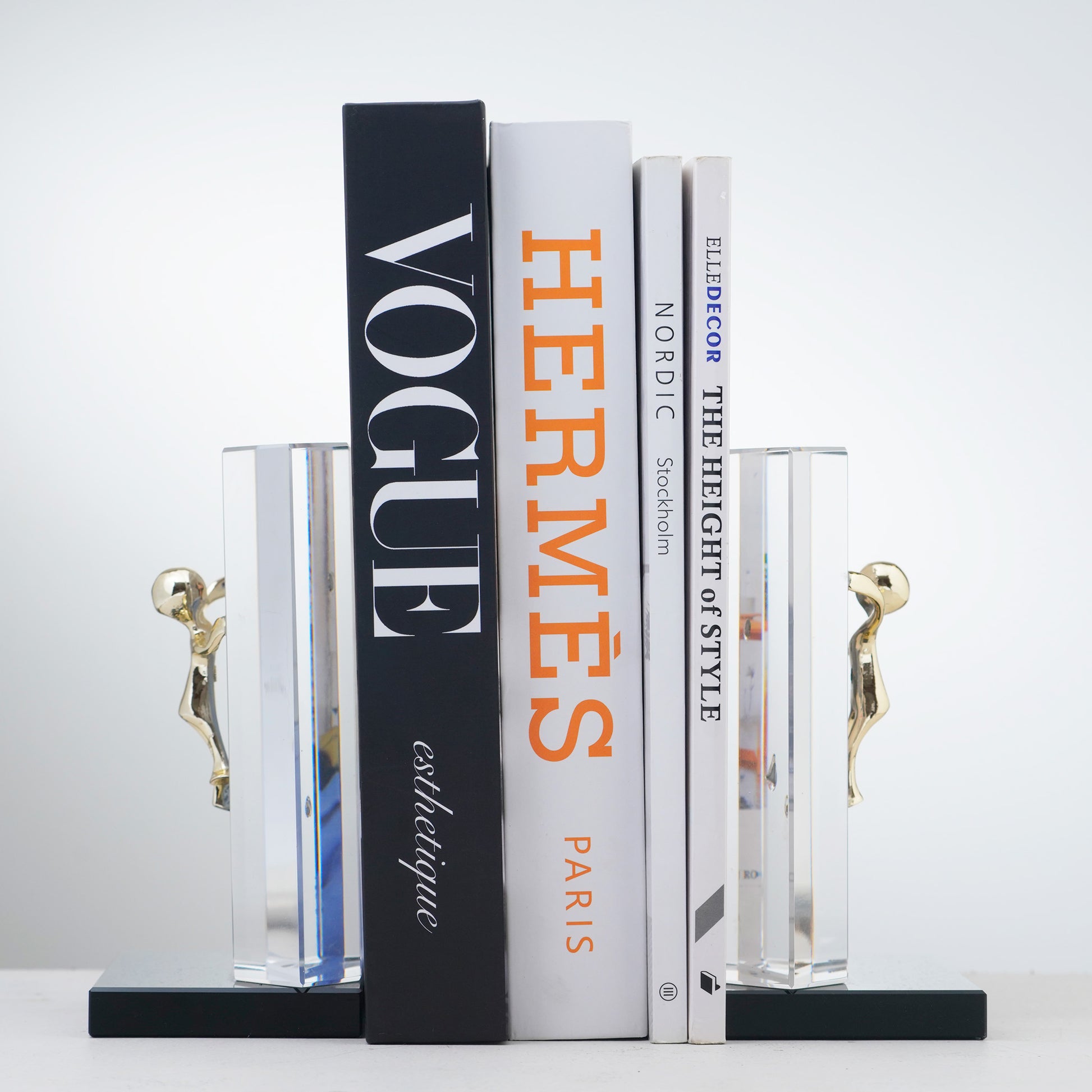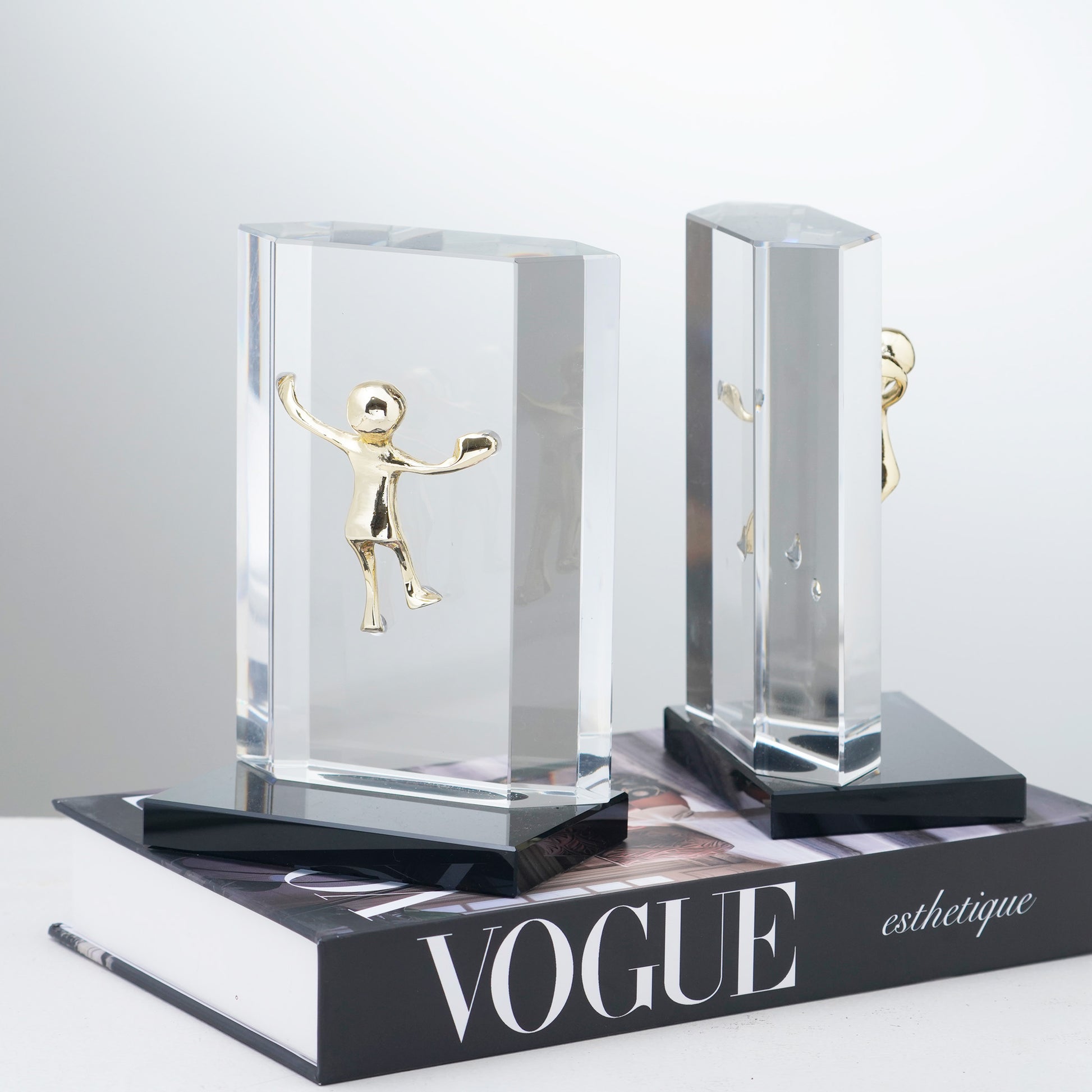 Summit - Crystal & Brass Human Figurines & Bookend (Set of 2)
