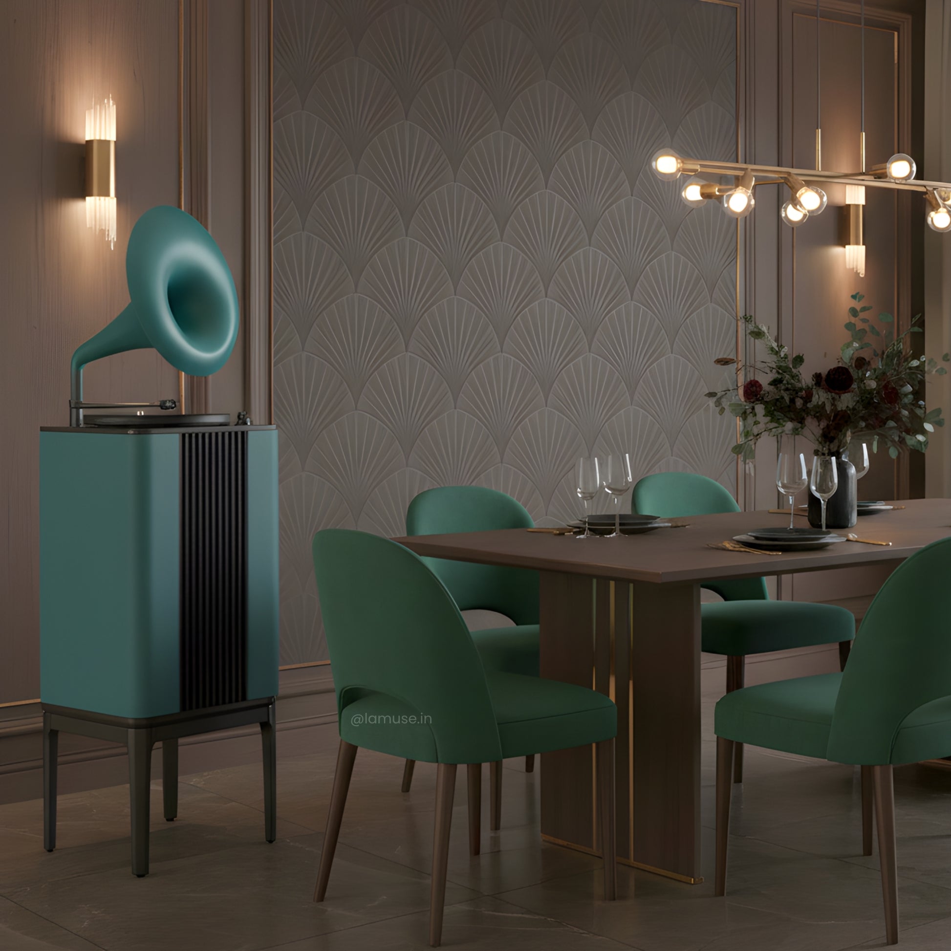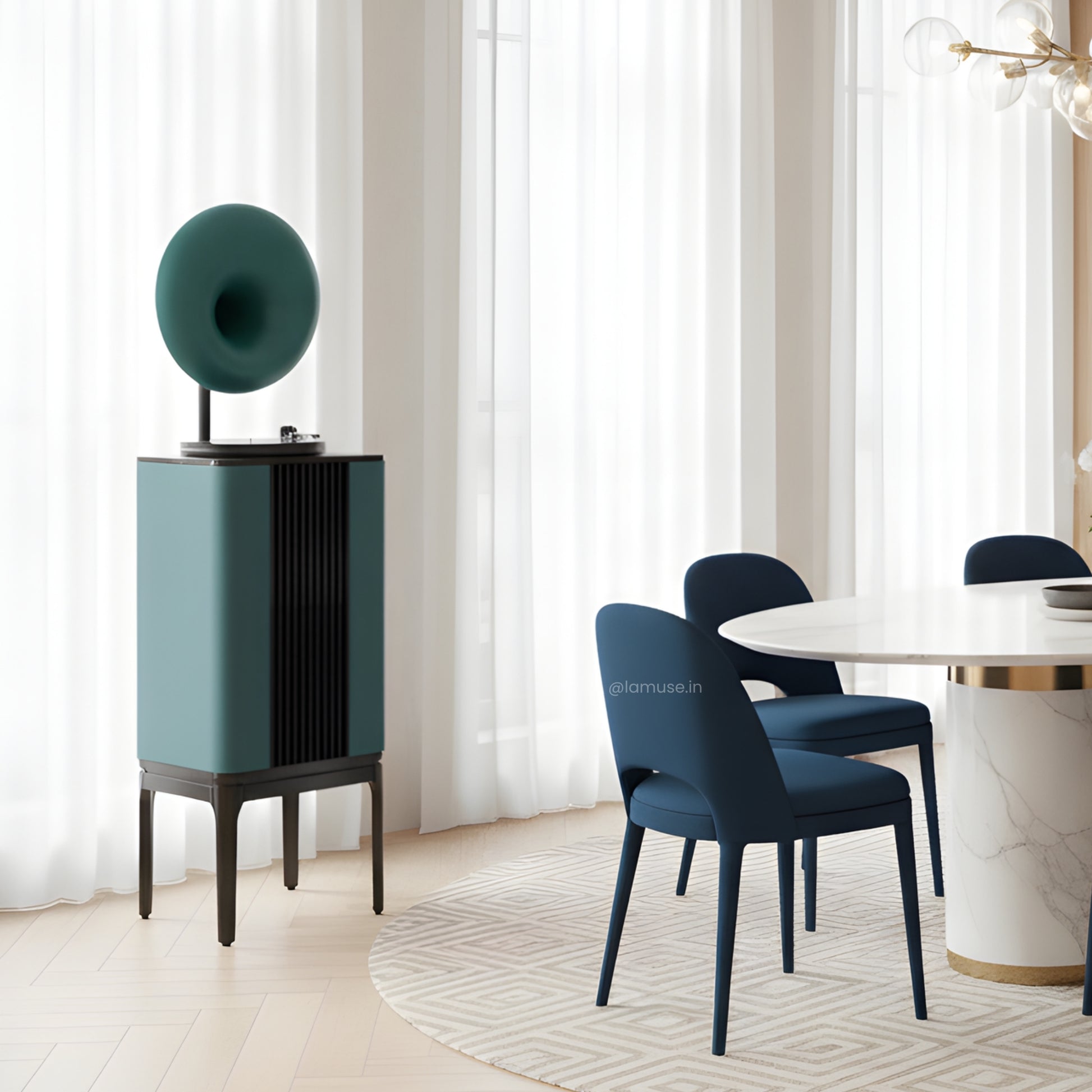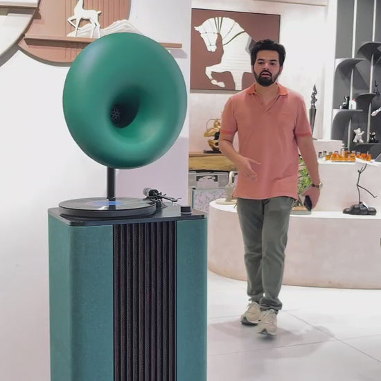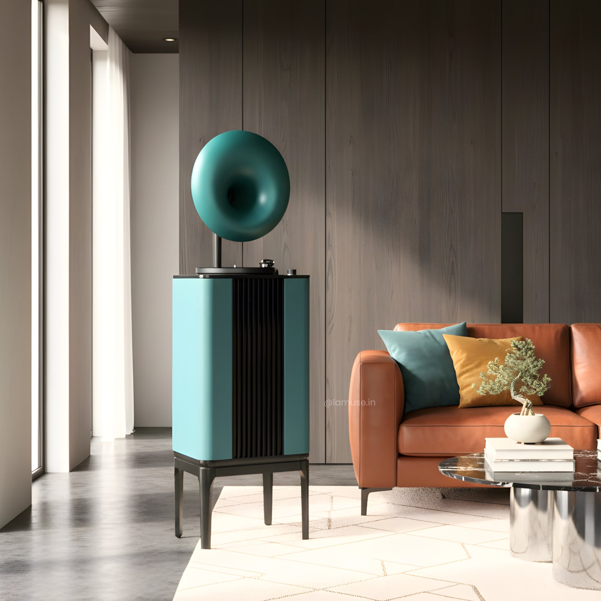 This working gramophone is a conversation between eras — Designed for those who see nostalgia not as the past, but as permanence, Symphony transforms music into an atmosphere — sculptural, soulful, and deeply human.