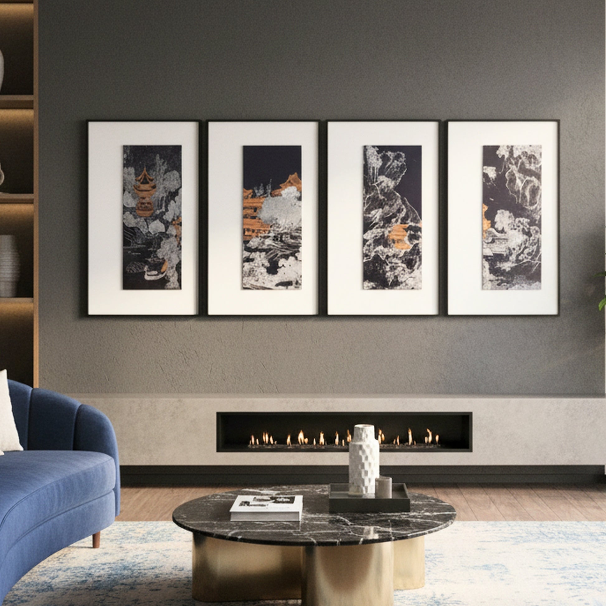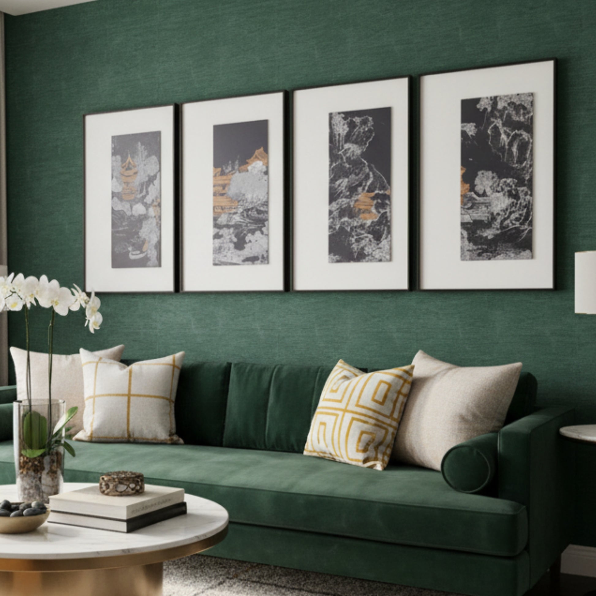Tales of the Noble Court - Leather & Silk Textured Premium Wall Art (Set of 4) ~ 5.5 Ft Long