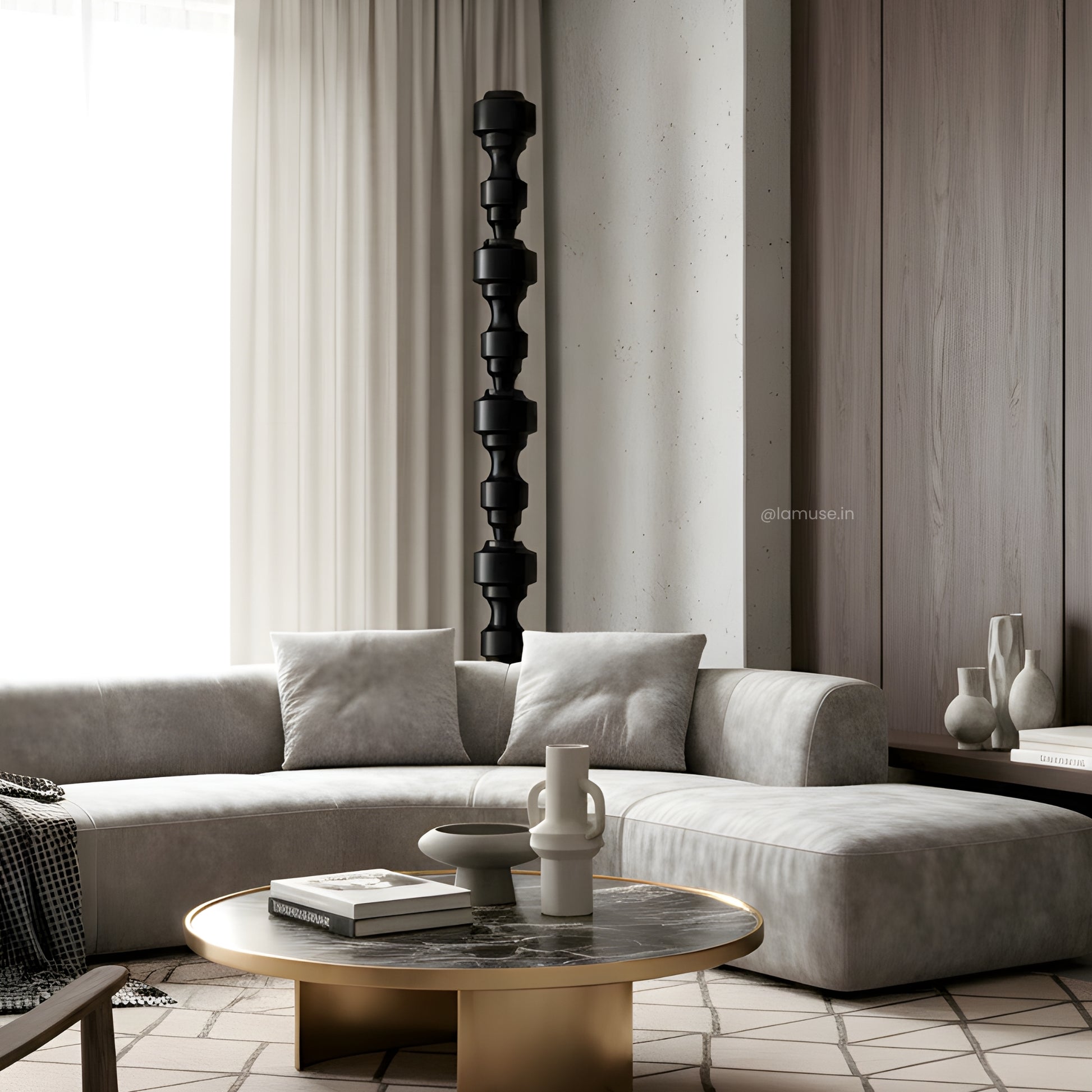 Material: Crafted with a marble base and a metal–wood structure — a study in balance, texture, and enduring form.